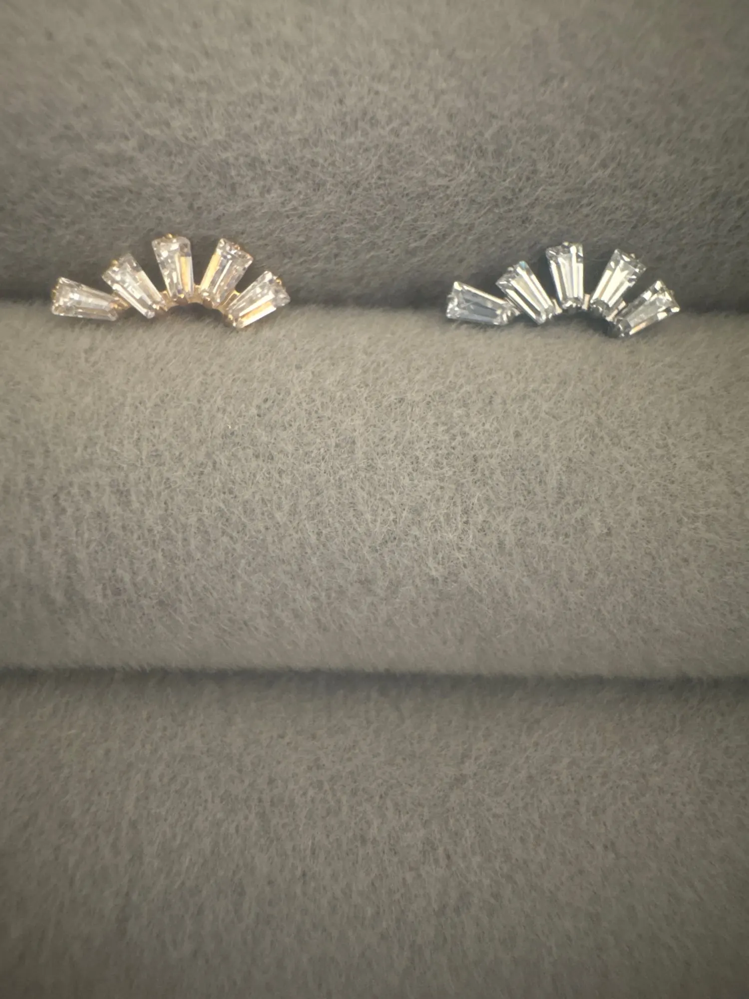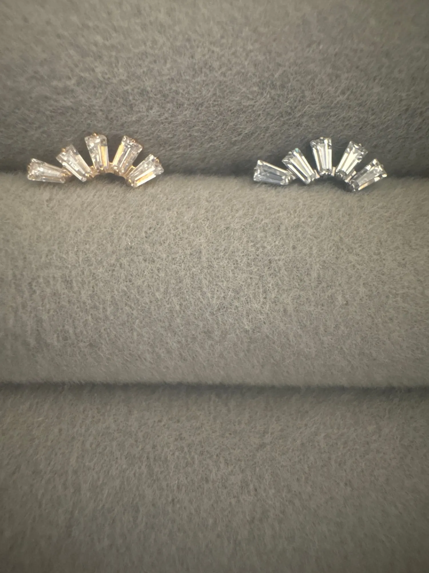 Add a sharp, modern edge to your ear project with this Geometric Baguette Cluster. Featuring a unique trapezoid arrangement of clear CZ stones set in implant-grade ASTM F136 Titanium. This Art Deco-inspired piece offers a sophisticated sparkle. Finished with a comfortable flat back, it’s the perfect upgrade for your Tragus, Helix, or Conch